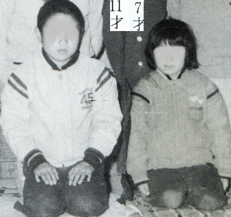 左の妹は無地の中綿キルト入りポリエステルジャンバーだが、腰部のゴム編みがないパターンで、初期(昭和45~47年頃)のポリエステルジャンバーに見られたパターンだ。推測に過ぎないが姉のお下がりを着ているのではないか。
