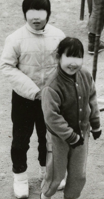 後ろのダウンブルゾンの少女、白のこんなブルゾンであけみと遊んでいたら相当汚れたと思われる。