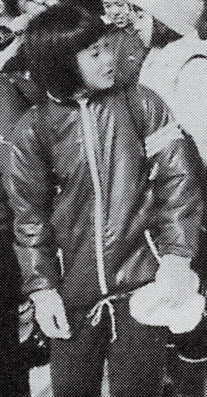 それまでは綿やウールの一枚もの(薄い裏地付き)ジャンバーが多かったから、このようにキルティング中綿を入れて、表側にそのステッチを出したこんなジャンバーは、温かい防寒服として少年少女の間に広まった。