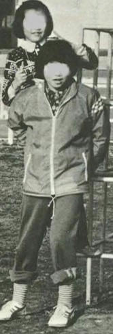 小学校高学年だと思うが、既にVネックジャンバーを売っていなかったと思われ、もしかするとお下がりかもしれない。