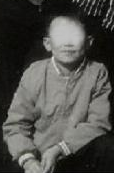 この少年も色がはっきりわからないが黄土色やくすんだ青など単色のジャンバーをチャック全部上げで嬉しそうに着ている。