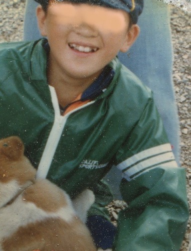彼の母親はレモン色のカーディガンや白と赤の2色のズボンや、うちの親が絶対に勝ってこないような鮮やかな色を彼に着せていた。